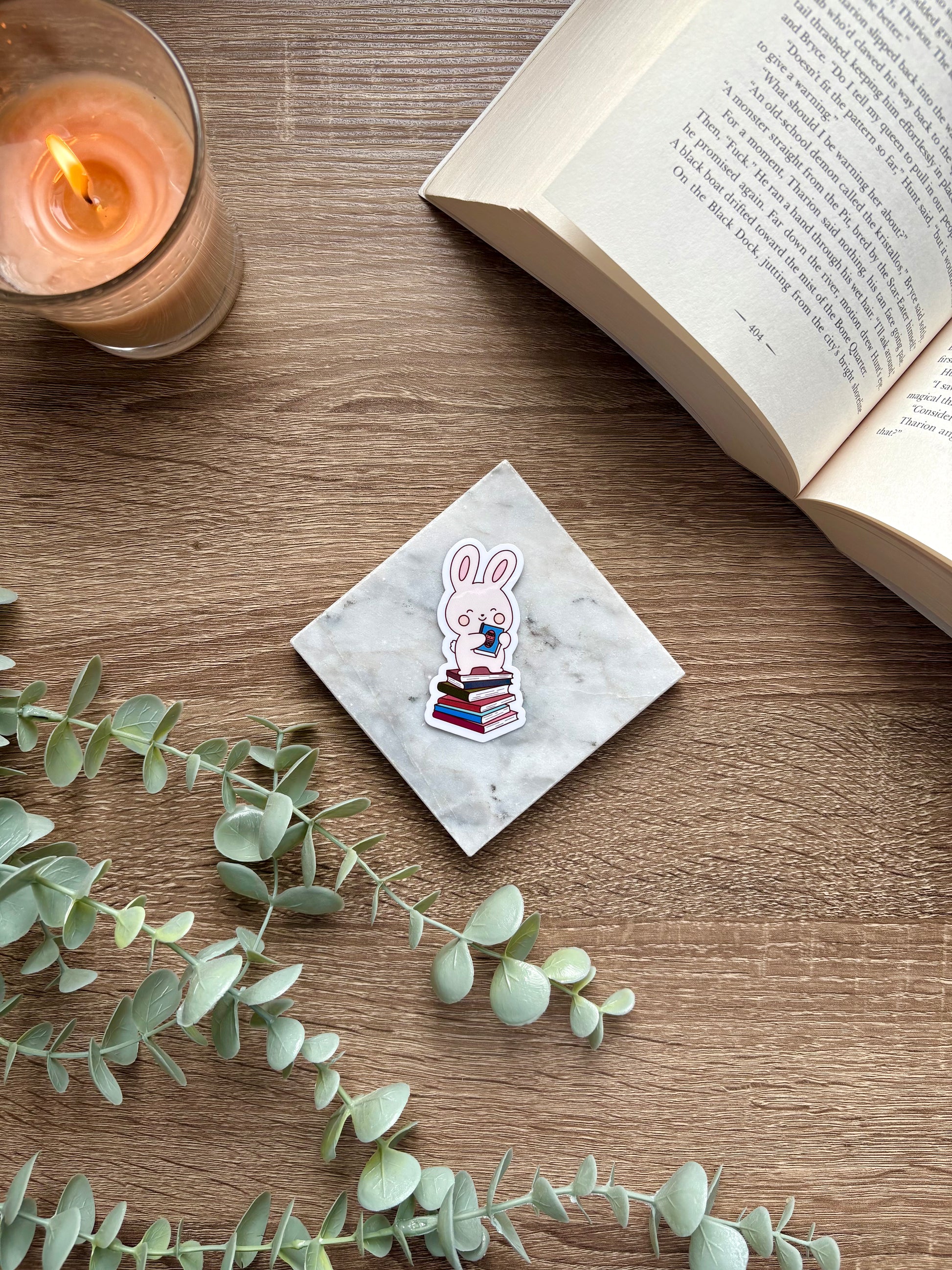 Bunny Book Stack Sticker
